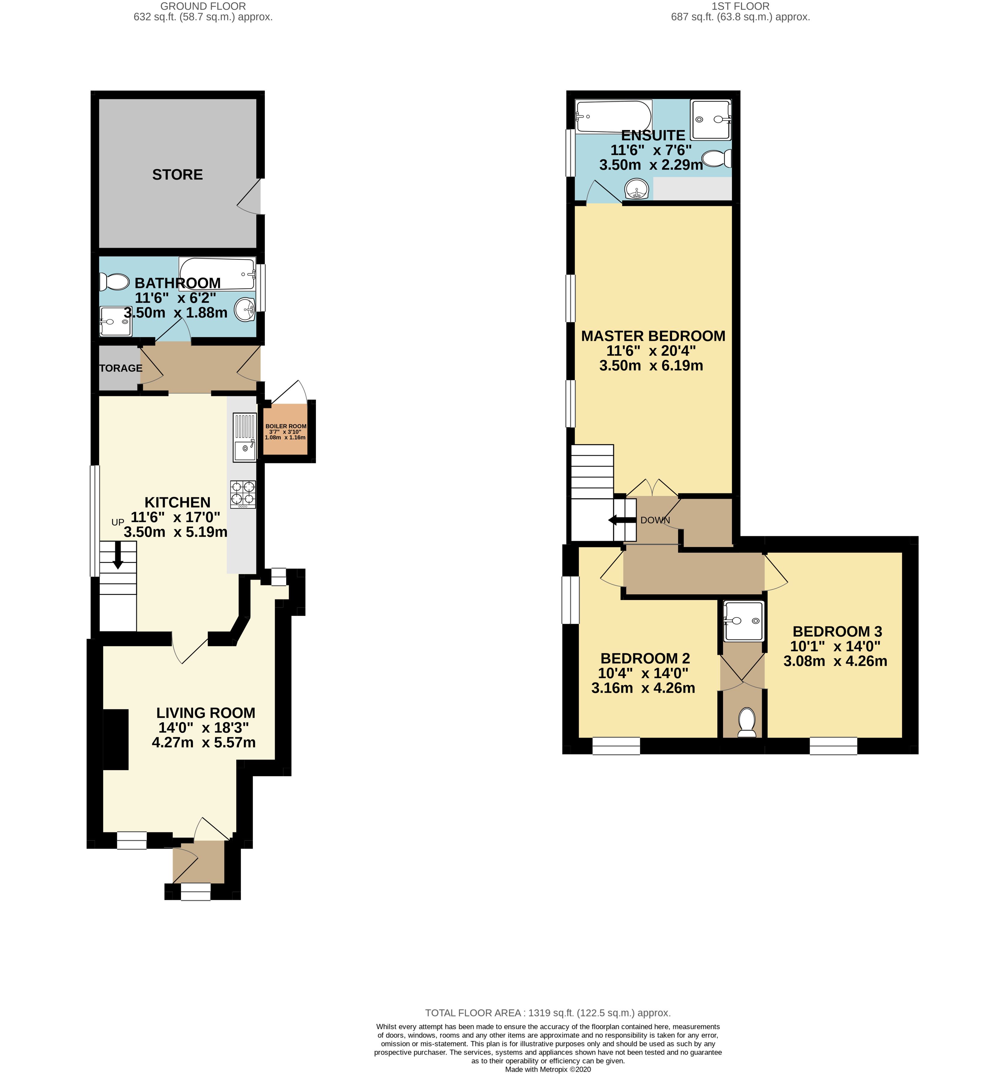 The cottage which was originally built in 1830 boasts comfortable living accommodation with a floor area of 122 sq. m (1319 sq. ft) including a living room, kitchen, bathroom and large storage room on the ground floor with three bedrooms )one en suite) and a shower room on the first floor.